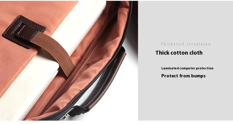 The sleek design of the Laptop Bag Portable Shoulder Liner Briefcase makes it suitable for both professional and casual settings. Its minimalist appearance, with clean lines and a modern aesthetic, adds a polished touch to your daily look. Whether you're heading to the office, attending a client meeting, or traveling, this briefcase is designed to enhance your overall appearance while keeping you organized.