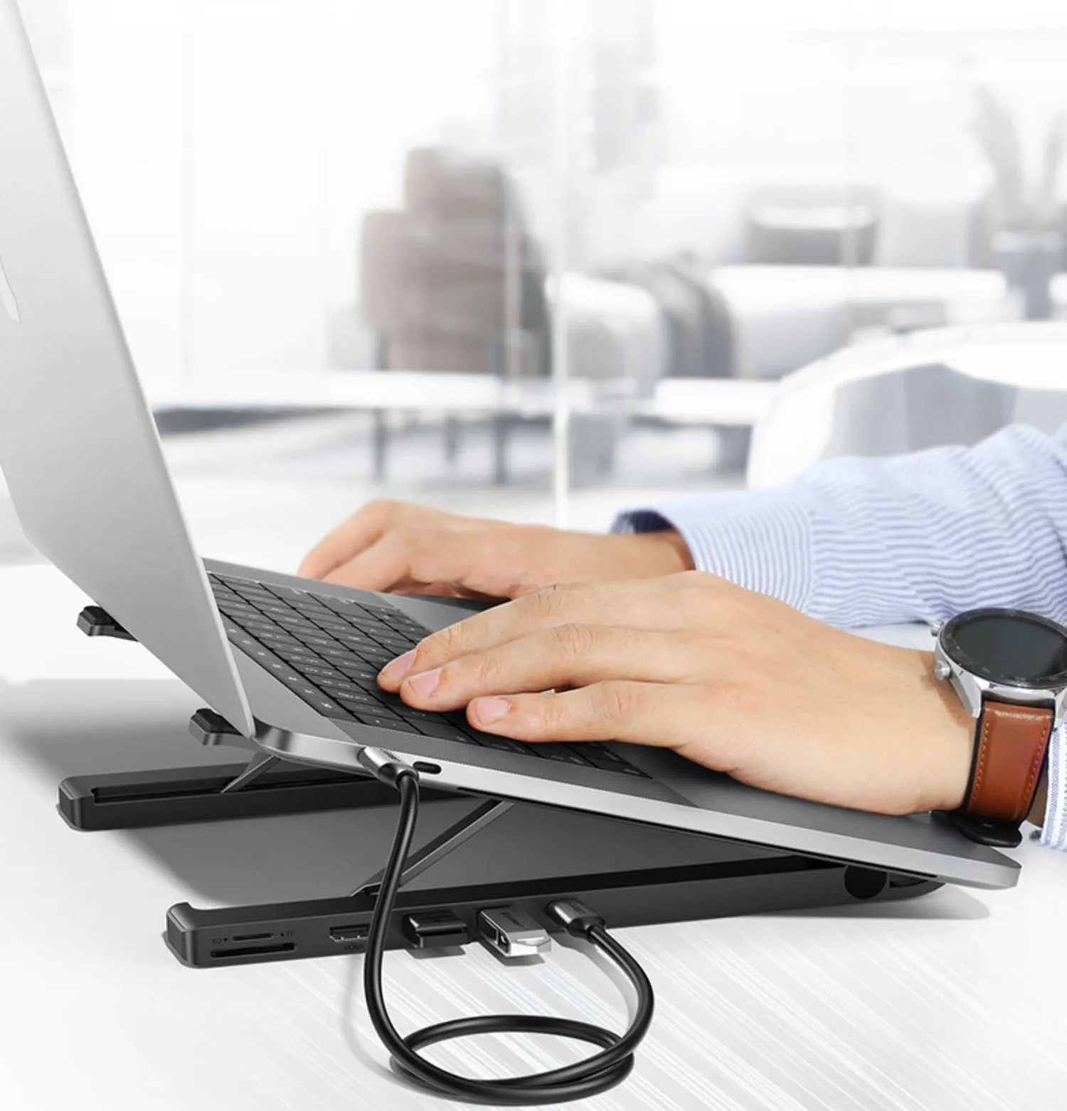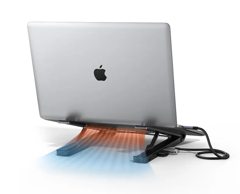 Made from durable, lightweight materials, this stand is sturdy enough to hold laptops of various sizes while remaining portable for easy transport. The elevated design helps reduce neck and back strain, improving posture and productivity. Equipped with ventilated cooling gaps, it prevents overheating, extending the lifespan of your laptop.