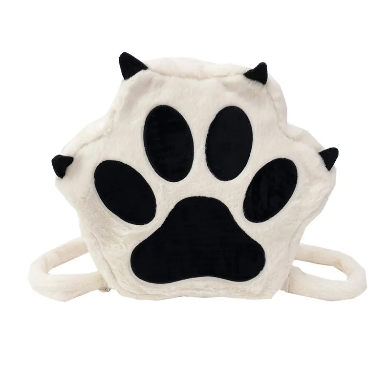The standout feature of this backpack is its unique and whimsical cat claw motif. The embossed or appliqué-style paw design adds a playful