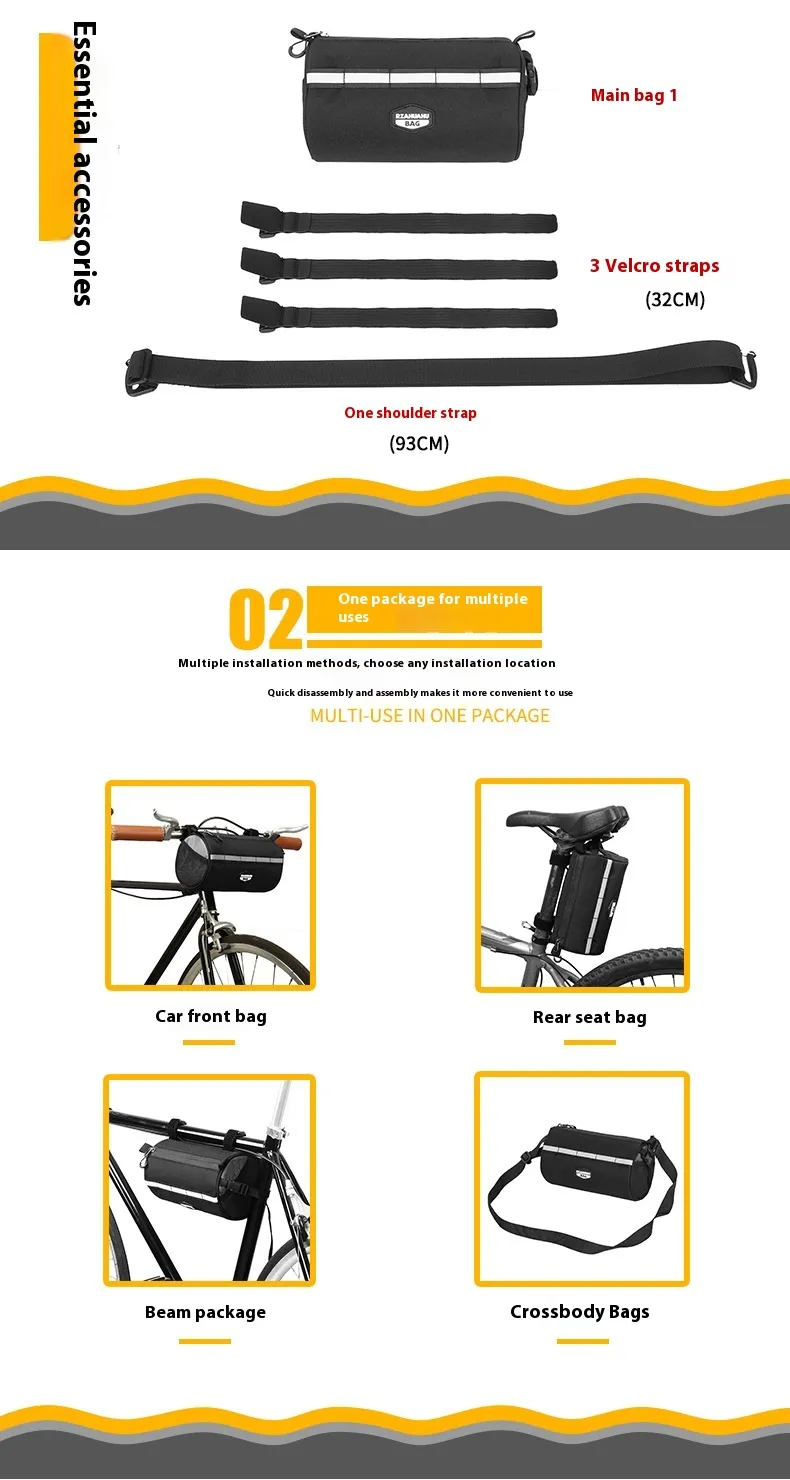 Designed with practicality in mind, the Folding Front Beam Pannier Bag easily attaches to the front of your bike, offering easy access to your gear while riding. The bag features a large capacity, allowing you to carry everything from tools and snacks to personal belongings, clothing, and more. Its foldable design ensures that when you're not using the bag, it can be conveniently collapsed to save space and maintain a streamlined look.