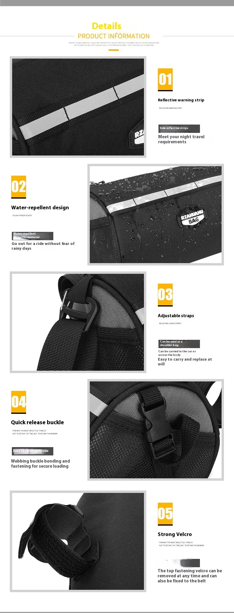 - Durability: Made from water-resistant, high-quality materials, this bag is built to withstand the elements and the rough demands of cycling.