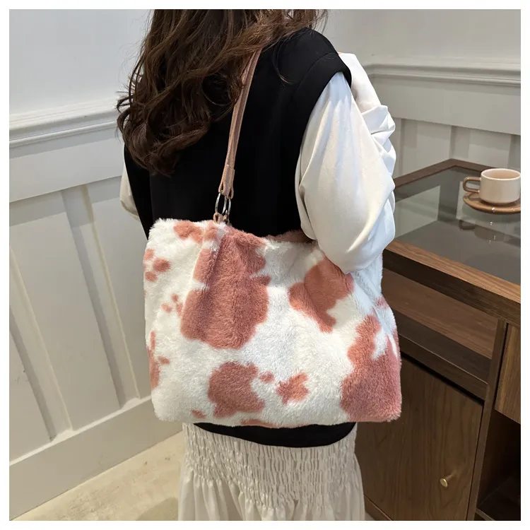 This tote bag is designed to suit a variety of occasions and outfits. Its large capacity and plush texture make it perfect for winter outings, while its elegant design ensures it pairs well with both casual and dressy looks. Whether you're heading to the office or out for a weekend brunch, this bag complements your wardrobe effortlessly.