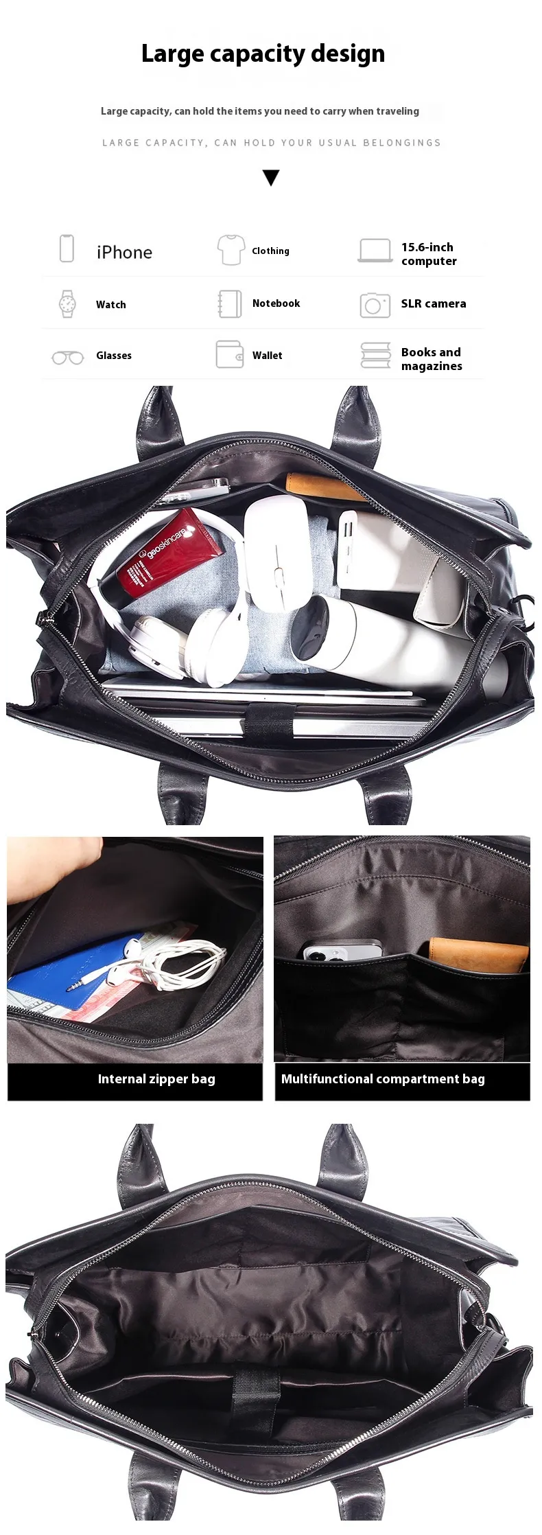 Large Capacity Genuine Leather Travel Luggage Bag Cowhide Handbag