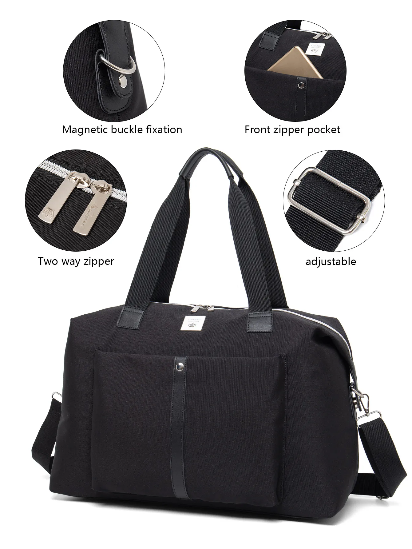 - Ergonomic Comfort: The adjustable shoulder straps and padded handles ensure a comfortable carry, even when the bag is fully packed. Whether you're carrying it on your shoulder or using the top handles, the bag provides a comfortable fit.