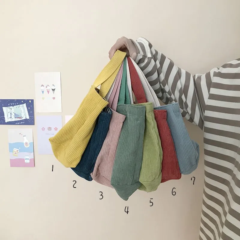 handbag (snap button) yellow, corduroy small handbag (snap button) light green, corduroy small handbag (snap button) dark green, corduroy