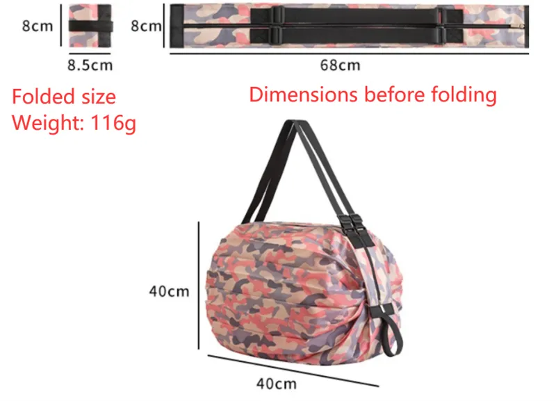 Compact foldable design ensures the bag is always within reach, whether in your car, handbag, or backpack.