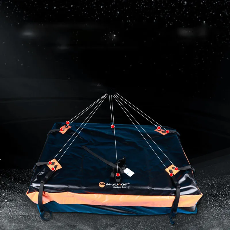 Purpose: It is used to store luggage and other packages, and is fixed on the roof rack with straps equipped with waterproof bags. The
