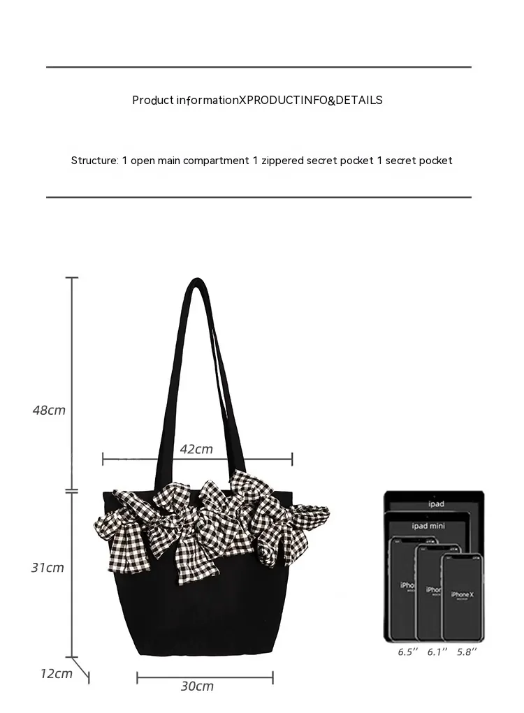 Large-capacity Three-dimensional Plaid Big Bow Crossbody Bag