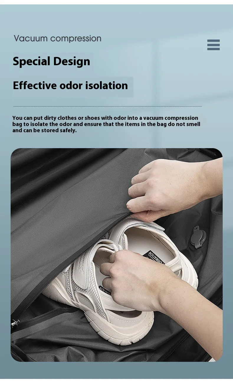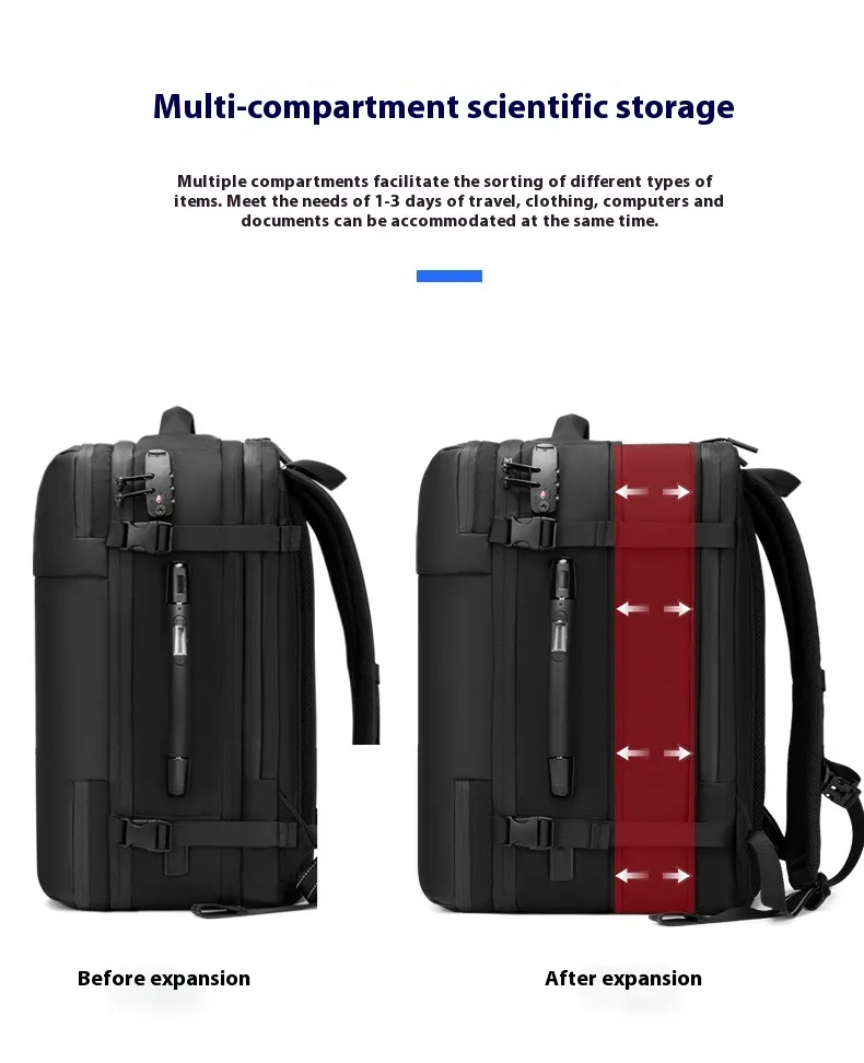 Introducing the Large Capacity Vacuum Compression Backpack, designed for the modern traveler who values functionality, security, and
