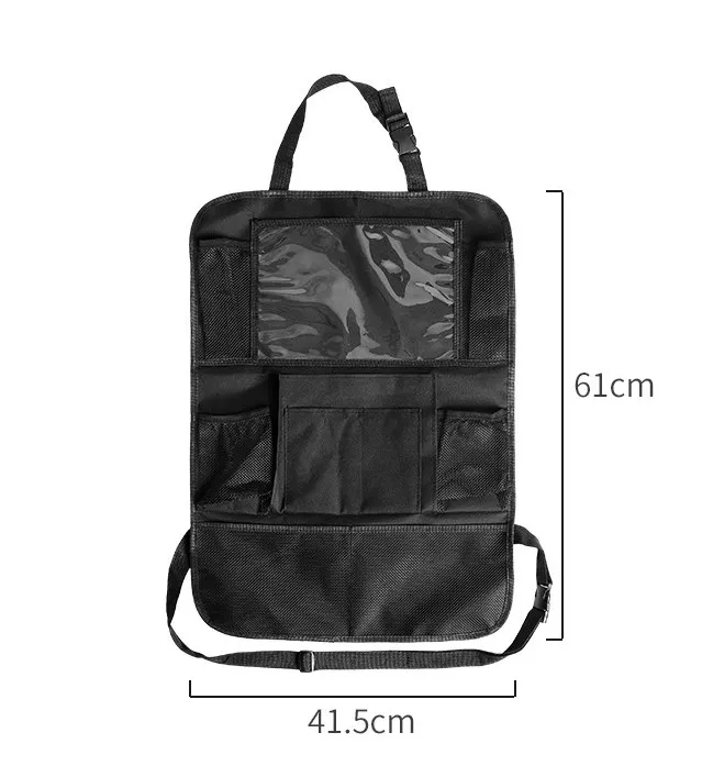 The Car Seat Back Storage Bag features a sleek and modern design that seamlessly blends with any car interior. It is made from high-quality, durable materials that ensure longevity and resistance to wear and tear. The bag is available in a variety of colors to match your vehicle's interior. With multiple compartments and pockets, it provides ample space for storing a wide range of items, from electronic devices and water bottles to snacks and personal belongings.