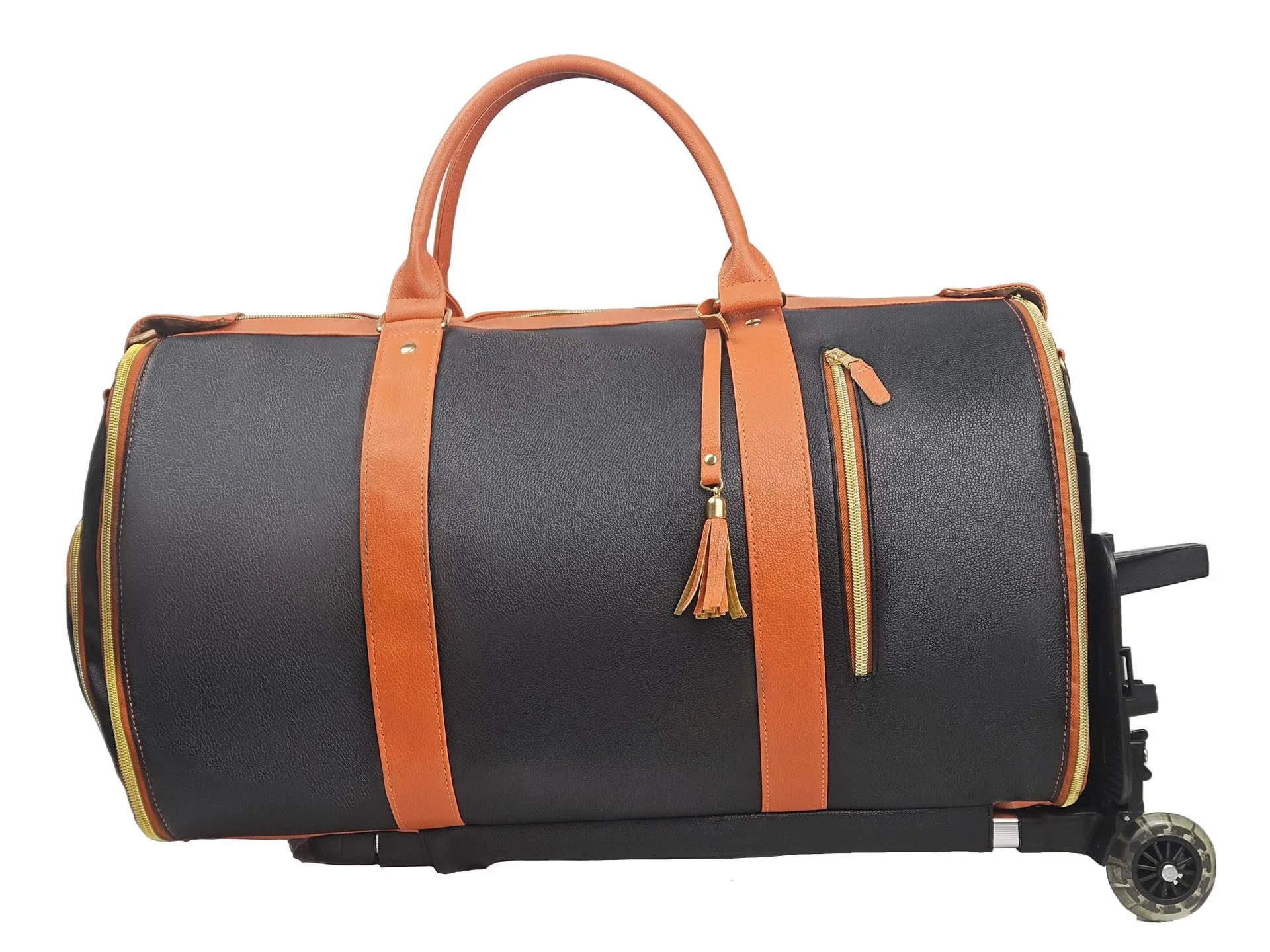 - The travel bag is made from premium, water-resistant fabric or durable leather (depending on style), ensuring it can withstand the rigors of travel and last for many trips.