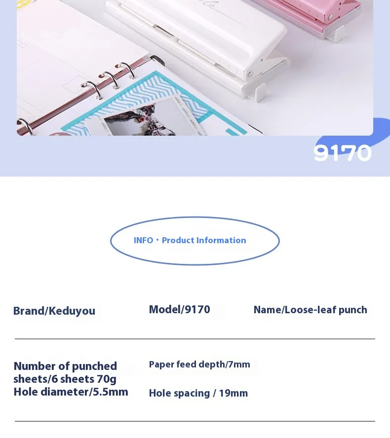 Suitable hole count: A4/A5/A6/A7/B5 paper standard 6 holes