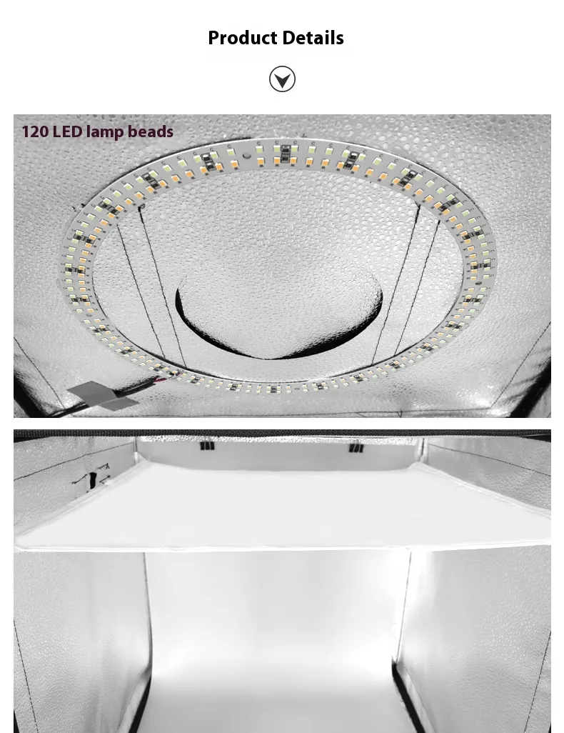 Equipped with adjustable LED lights, the Large Light Box for Photography offers customizable lighting settings to suit your specific needs. Whether you need bright, intense light for small items or soft, diffused light for delicate products, the LED lights allow you to create the perfect lighting setup for any item.
