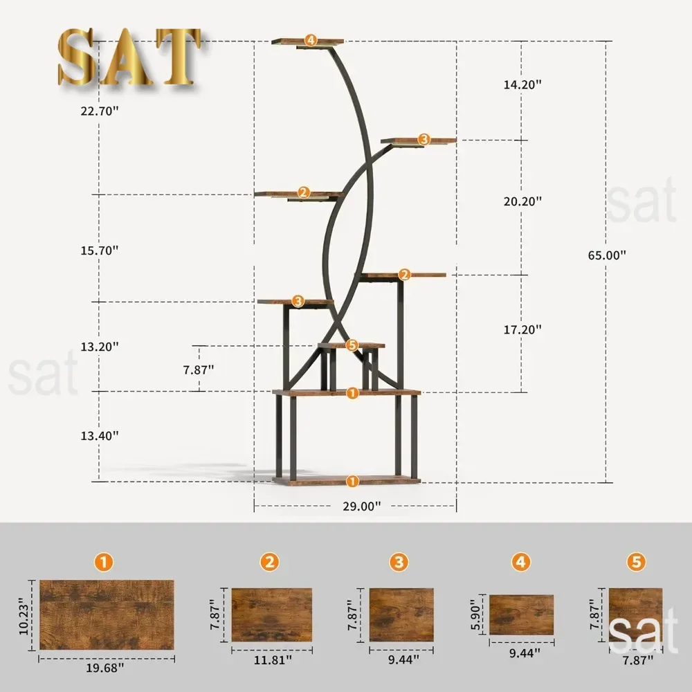 The stand includes several shelves at different levels, allowing you to display a range of plants in a visually organized way. This multi-tier design makes it easy to arrange plants of varying heights and sizes, creating an attractive, layered look.
