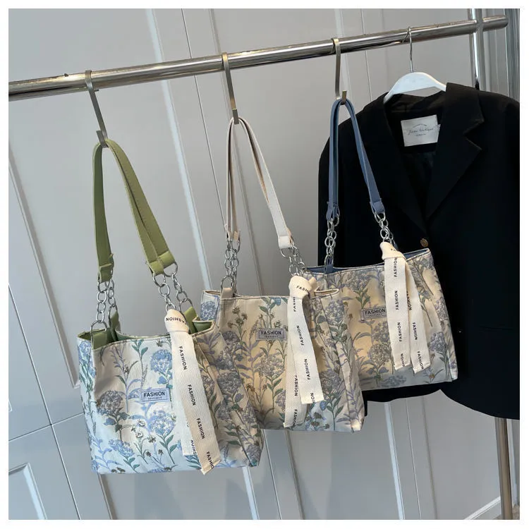 Large Shoulder Bag Summer Flower Young Women's Canvas