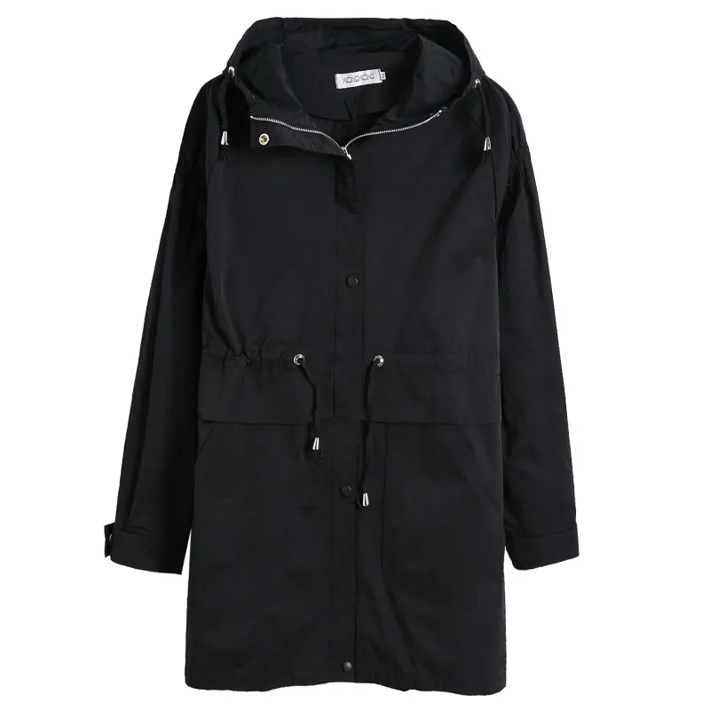 Large size autumn 200 kg Korean loose mid-length hooded trench coat