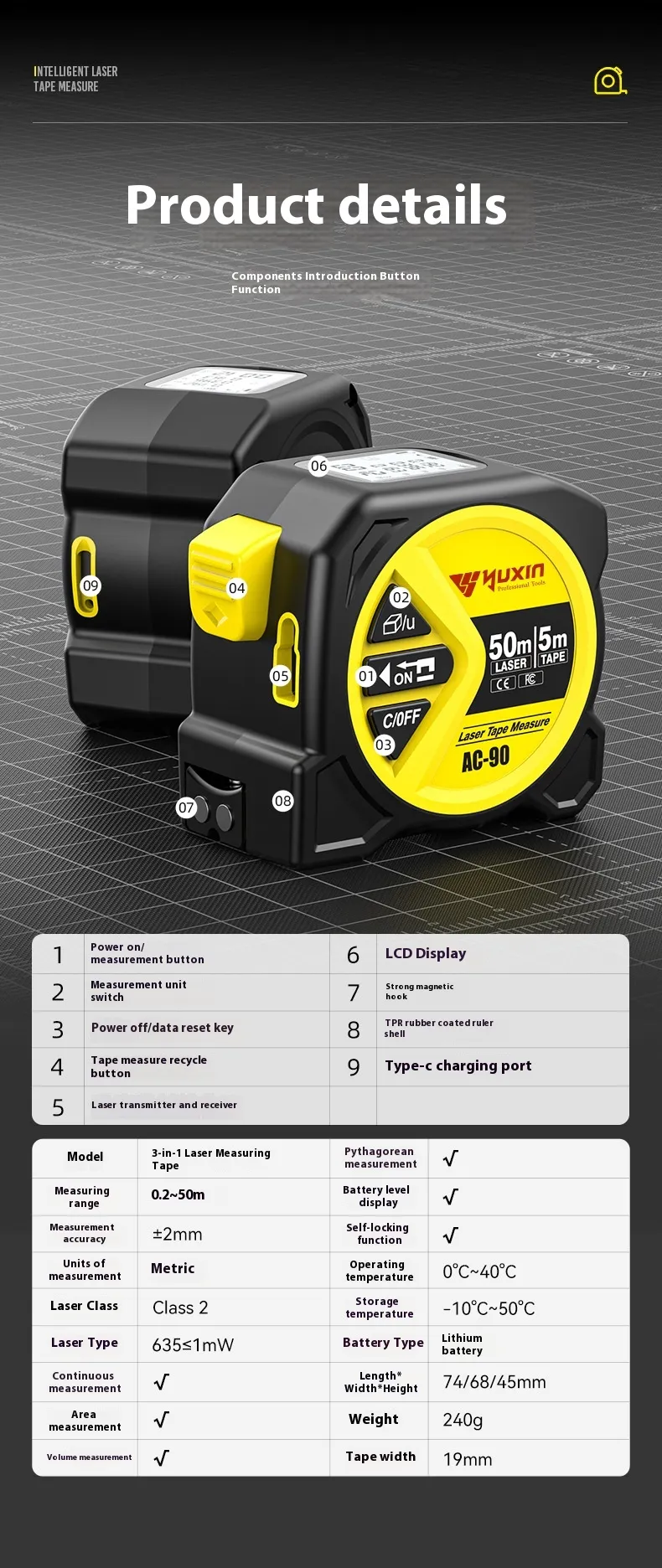 Battery Efficient: Long-lasting battery life, ensuring you can complete your measuring tasks without frequent recharging.