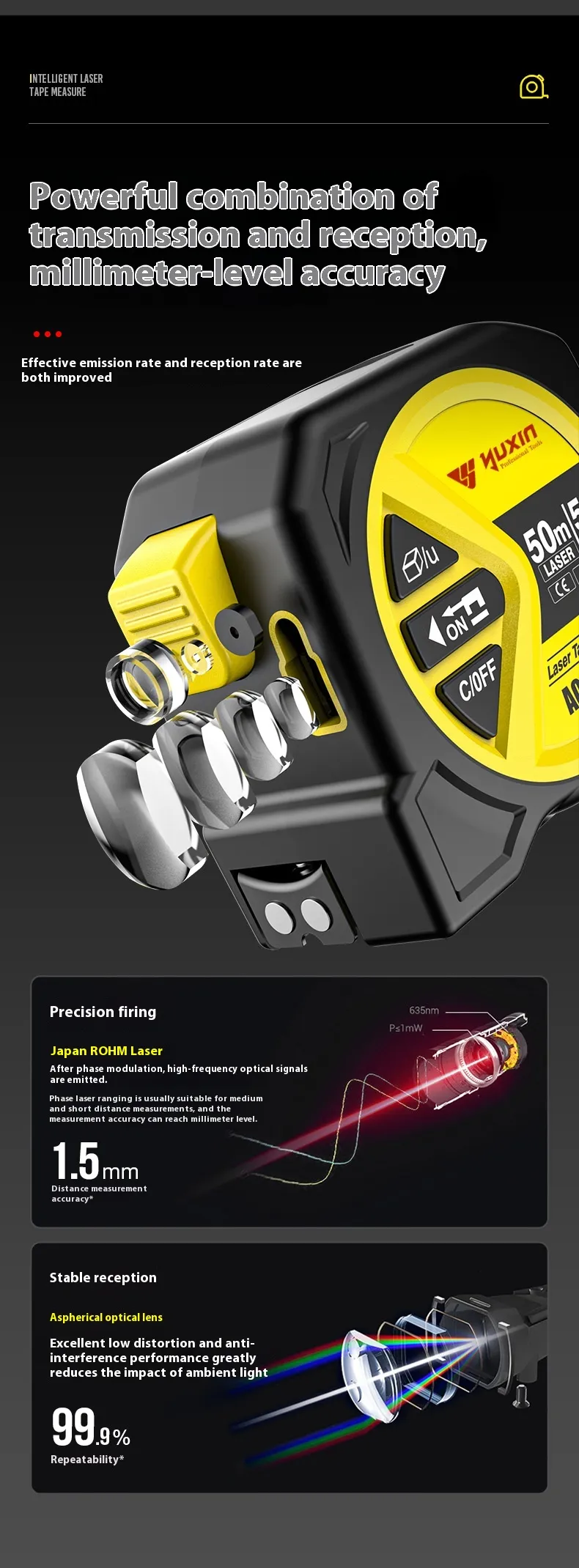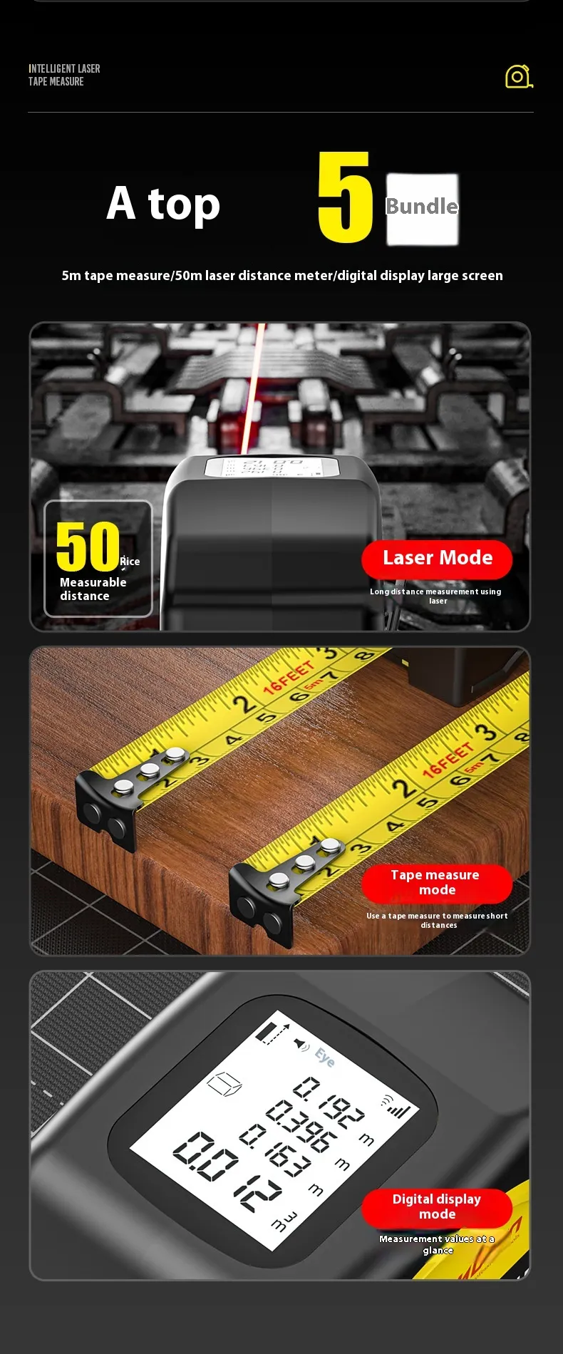 Enhanced Accuracy: With laser precision, this tape measure ensures that your measurements are accurate every time, helping