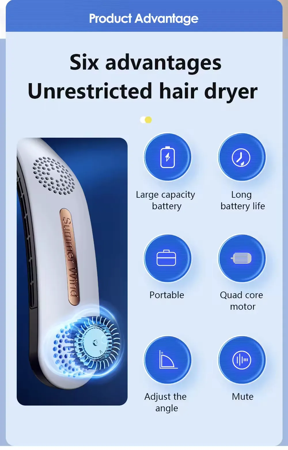 Product features: hanging neck without tangling hair