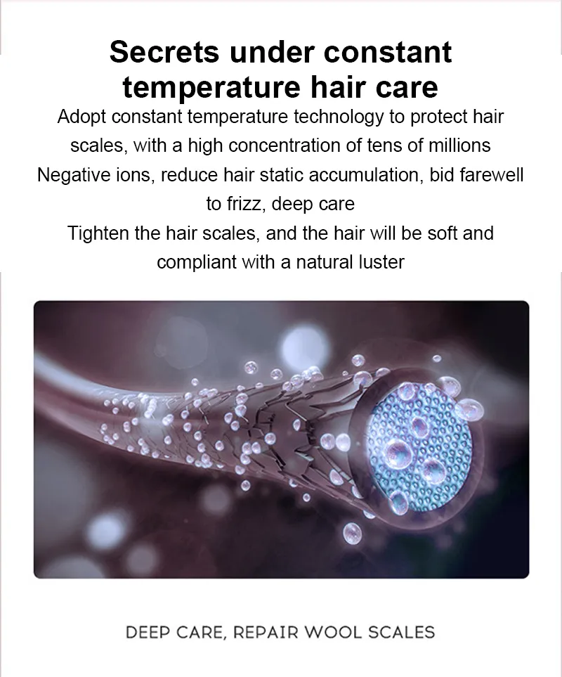 IONIC TECHNOLOGY & CONSTANT TEMPERATURE: Hair dryer with Negative Ionic Technology, emiting massive negative ions with temperature constant function to eliminate frizz makes hair moister, smoother,ensure the healthiest hair care protect hair from dull or damaged.