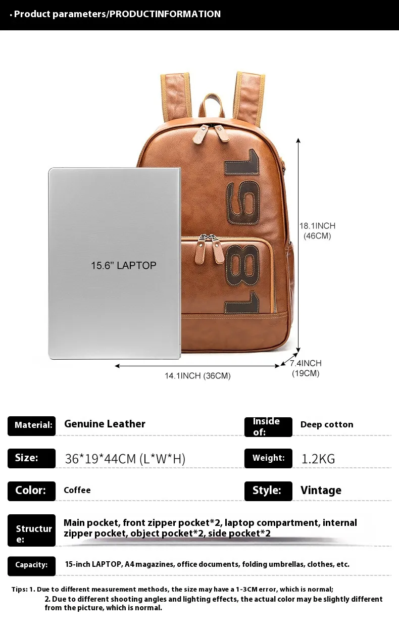 Elevate your travel and everyday style with the Leather Backpack Large Capacity, crafted from premium first-layer cowhide leather. Combining