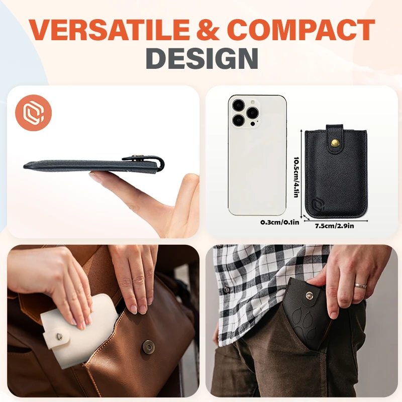 Effortless Access - Simply pull the tab to access your most commonly used cards. No more digging through a crowded wallet. Enhanced Security - Shield your cards and cash with the snap button. Rest assured, your items will stay secure and won’t easily fall out. Ample Storage - Holds up to 10 cards and includes a handy pocket for coins or cash, ensuring all your essentials are neatly organized.
