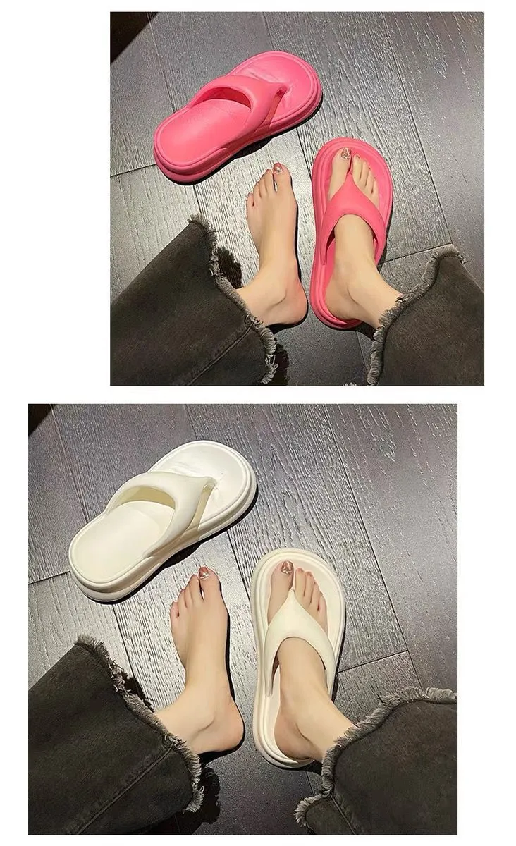 The chunky platform sole is the defining feature of these flip flops. It provides added height while distributing weight more evenly across the foot, helping reduce pressure on the heel and forefoot. This supportive structure makes the flip flops suitable for longer periods of walking compared to standard flat styles, offering improved stability and shock absorption.