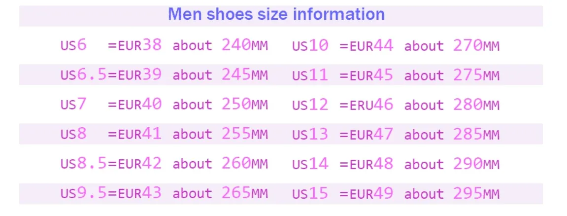 Sizes: 36, 37, 38, 39, 40, 41, 42, 43, 44