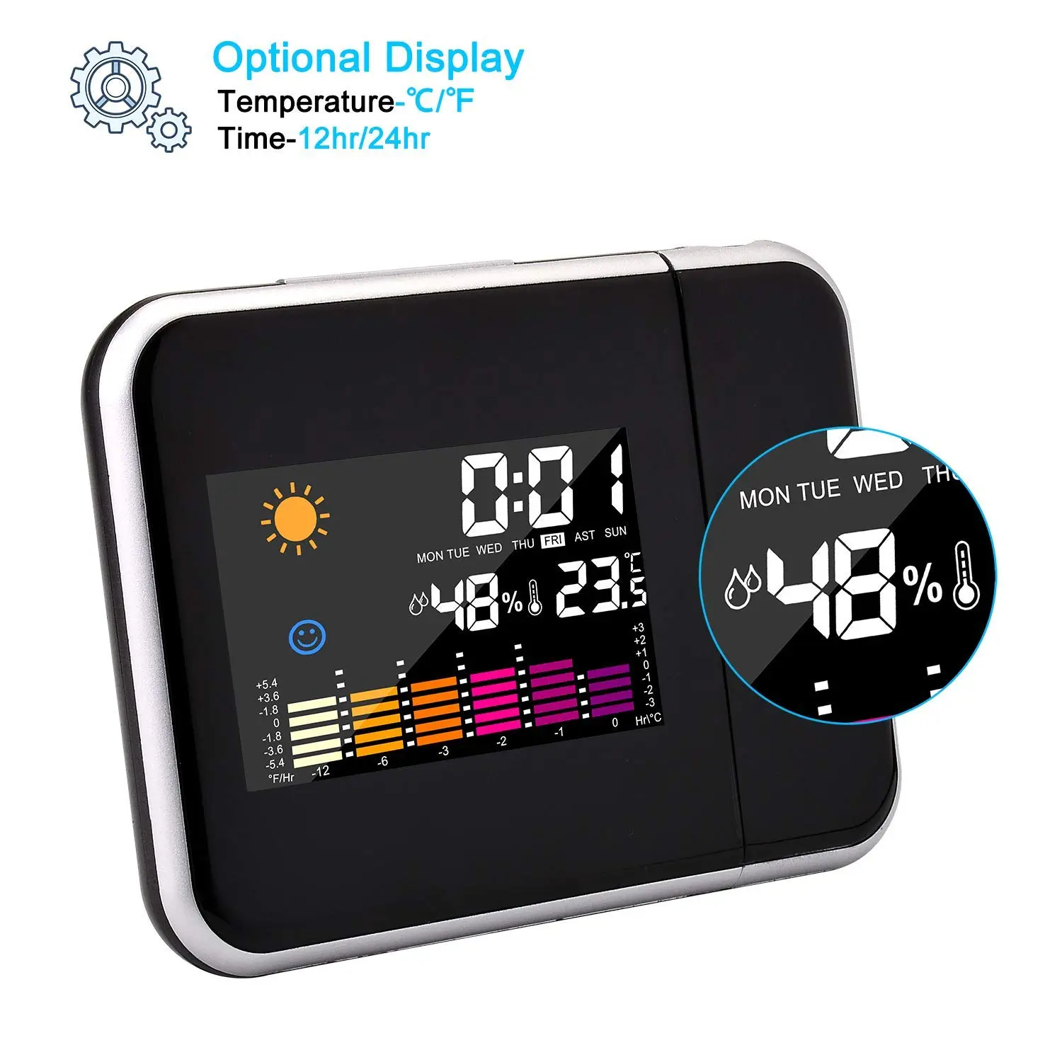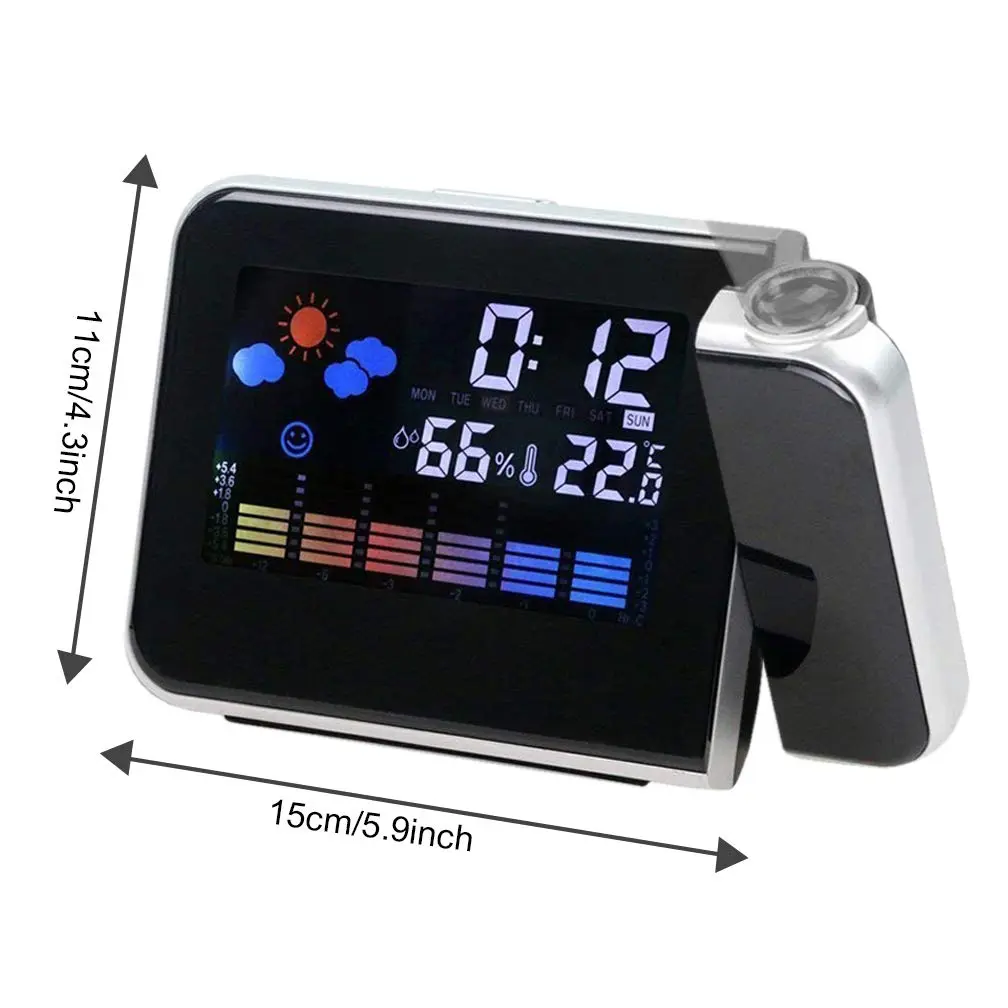 LED Alarm Projection Clock Thermometer Hygrometer Wireless Weather Station Digital Watch Snooze Desk Table Project Radio Clock