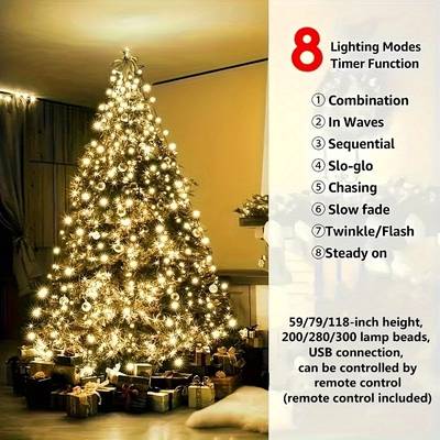 LED Christmas Lights Set with 8 Modes Bright, Festive & Easy USB Lighting