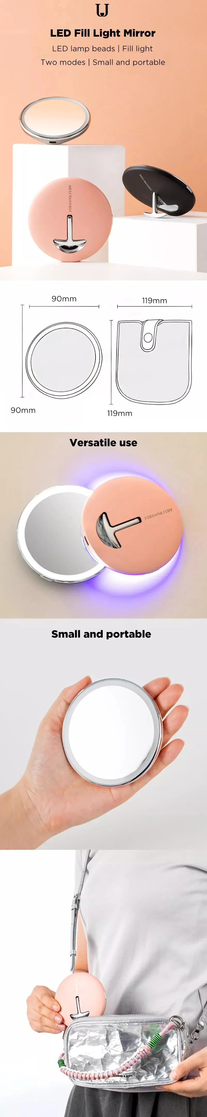 Mirror: ABS + glass + 304 stainless steel + zinc alloy