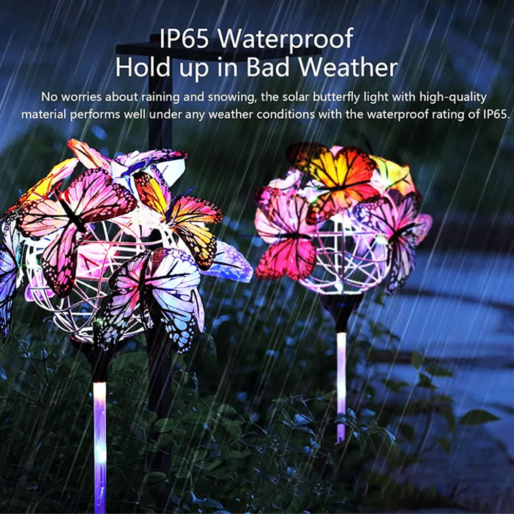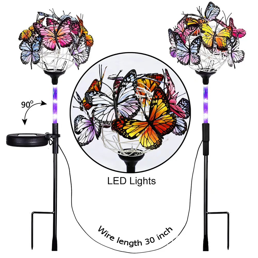LED Solar Light Luminous Butterfly Ball Waterproof Outdoor Garden Lawn Stakes Lamps Yard Art For Home Courtyard Decoration