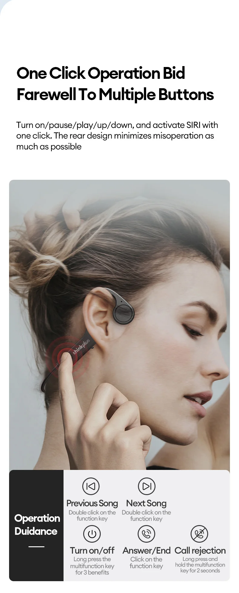 1. True bone conduction, no speaker, internal vibration and sound;