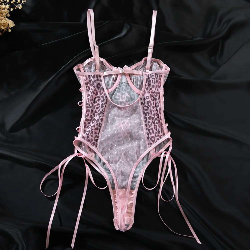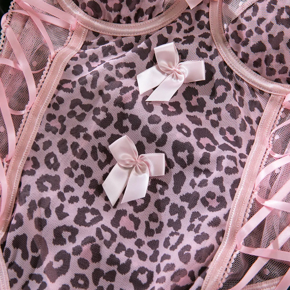 The see-through mesh fabric adds a provocative edge while maintaining elegance, making it perfect for special occasions, nightlife, or intimate moments. The combination of leopard print and polka dots offers a unique contrast that’s both trendy and timeless.