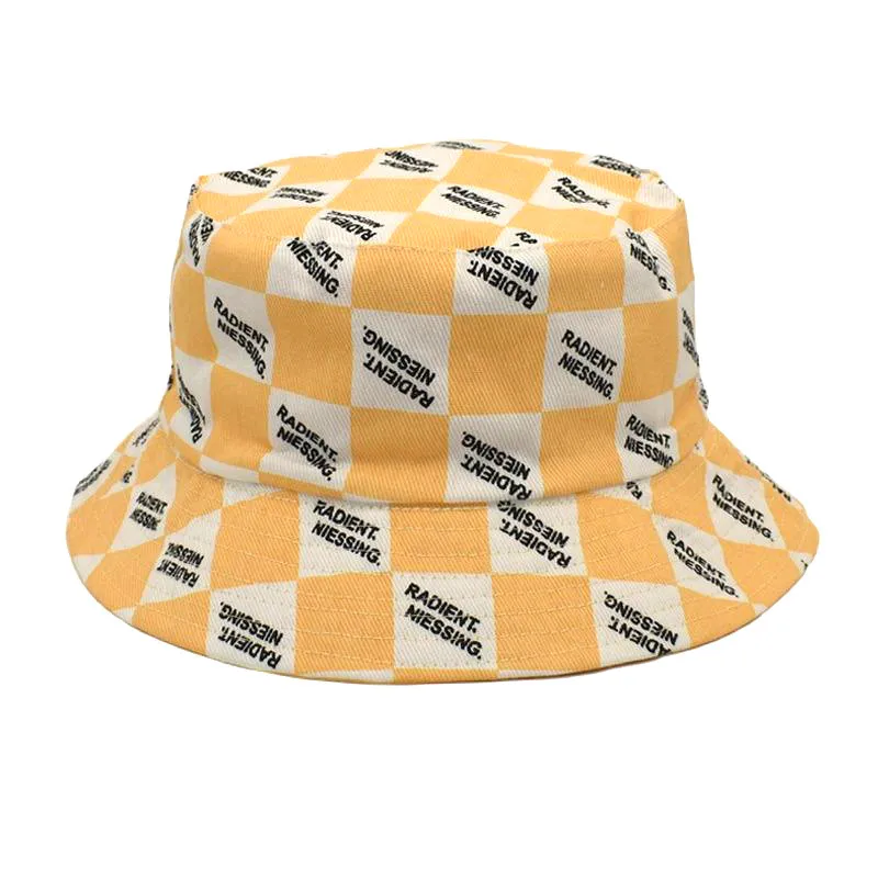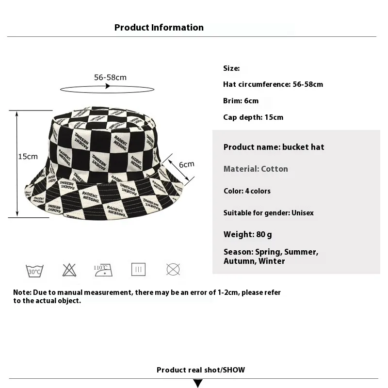 Product Description: Letter Plaid Bucket Hat Women's Fashion Double-sided Wear Bucket Hat