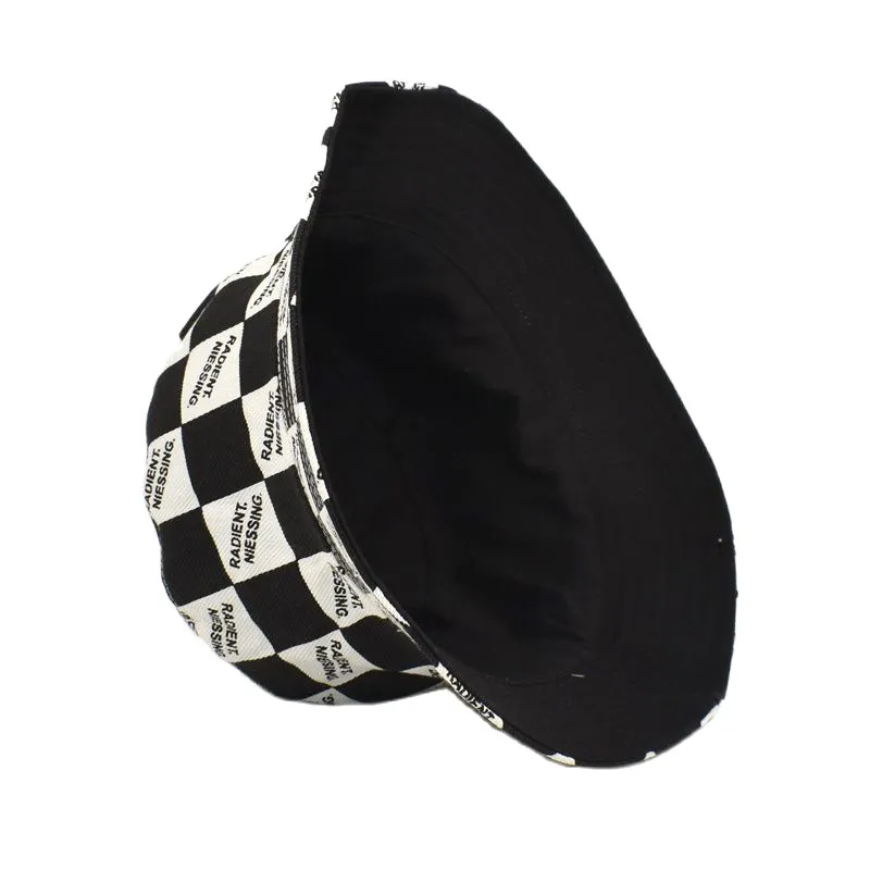 Letter Plaid Bucket Hat Women's Fashion Double-sided Wear Bucket Hat