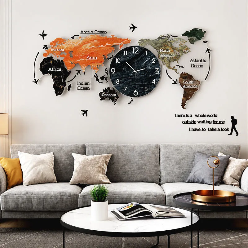 Light luxury decoration wall clock living room home map clock