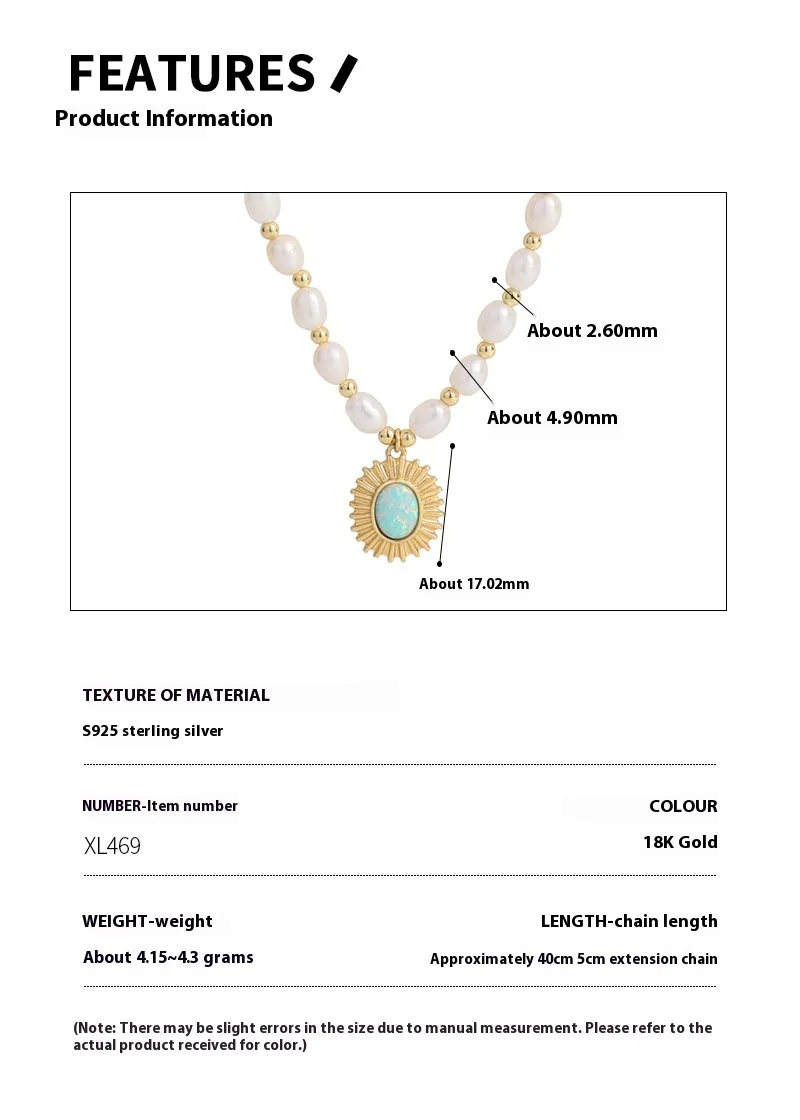 Key Features of the Light Luxury Design Opal Natural Pearl Necklace Sterling Silver