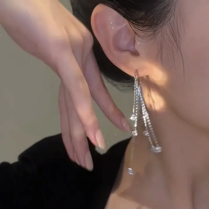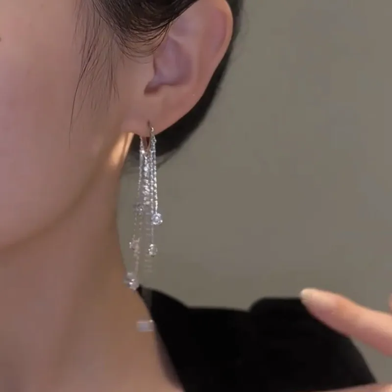 Light Luxury Long Fringed Zircon Eardrops