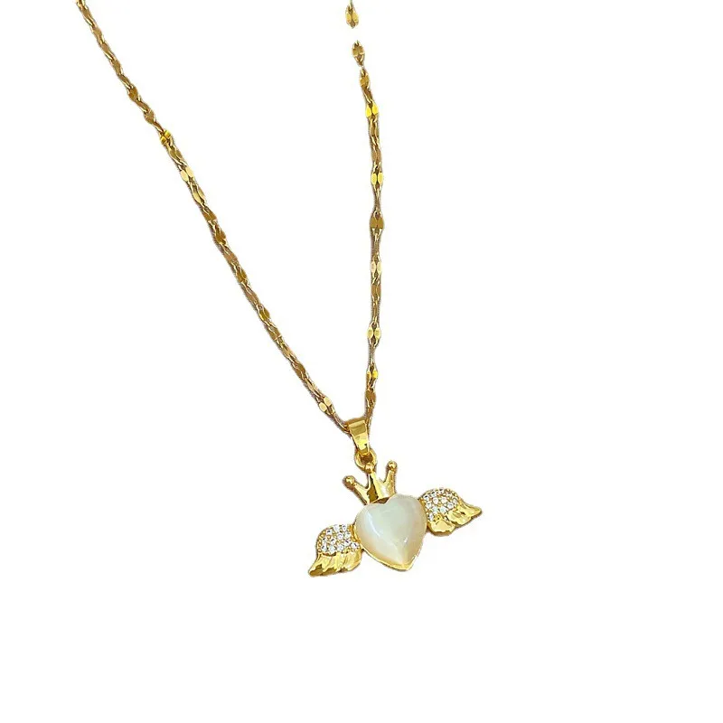 Light Luxury Micro-inlaid Opal Angel Heart Necklace