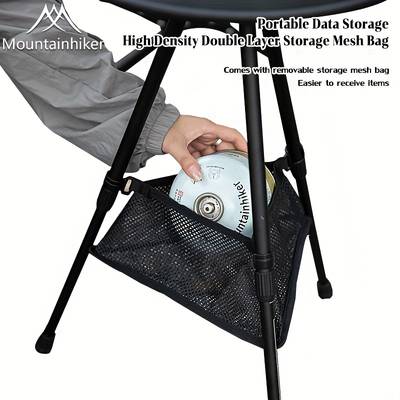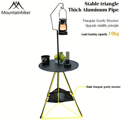 providing both illumination and storage, along with a bag for smaller items. Its design includes a robust triangular structure made from