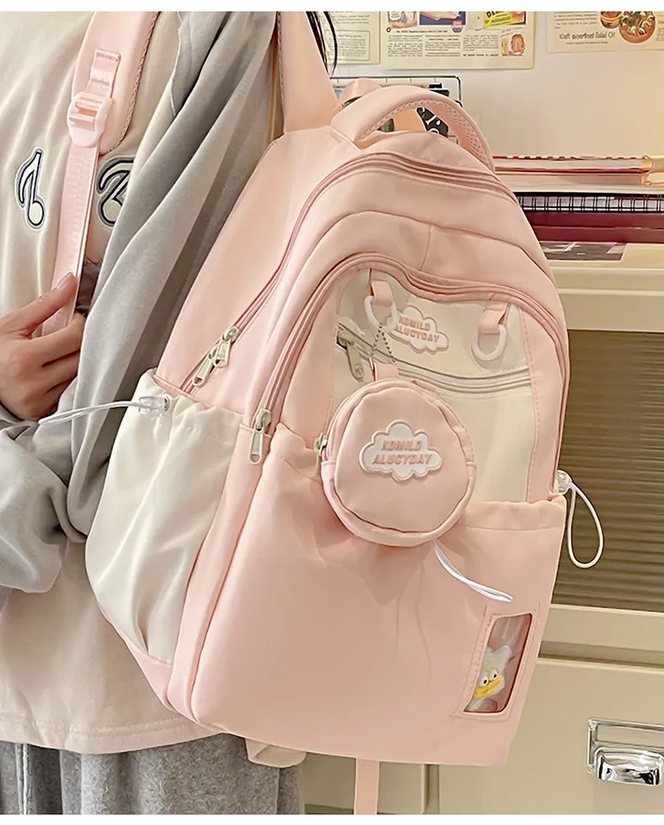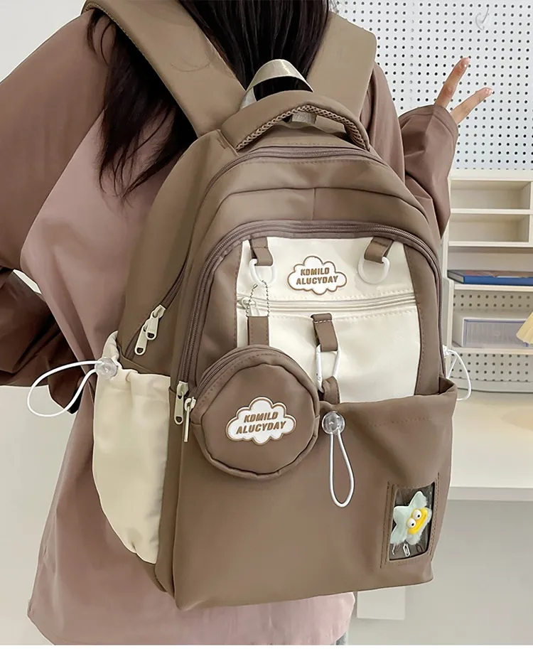 Color: black backpack, brown backpack, blue backpack, green backpack, pink backpack, black single-shoulder bag, brown shoulder bag, blue