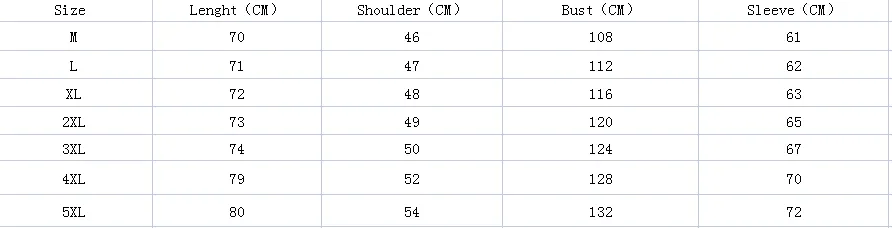 Size: M, L, XL, 2XL, 3XL, 4XL, 5XL