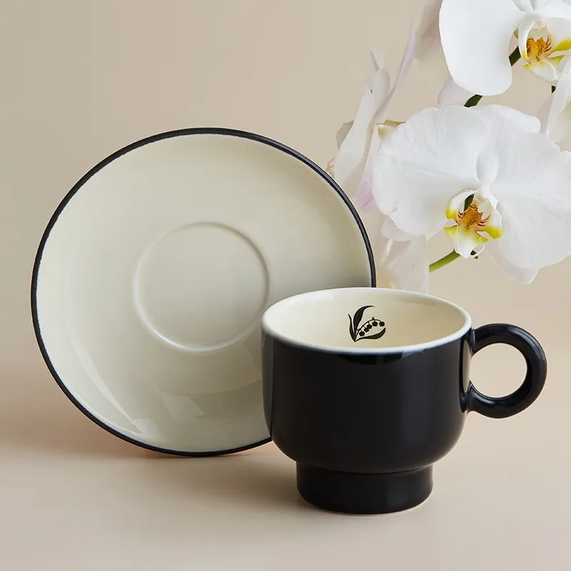 Lily Of The Valley Ceramic Coffee Cup And Saucer Personality Retro Solid Color Black