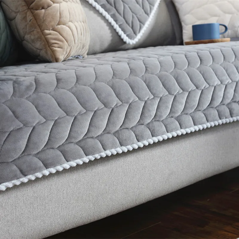 Winter plush sofa cushion fabric thickened left and right non-slip fashion North hall winter leather sofa cover