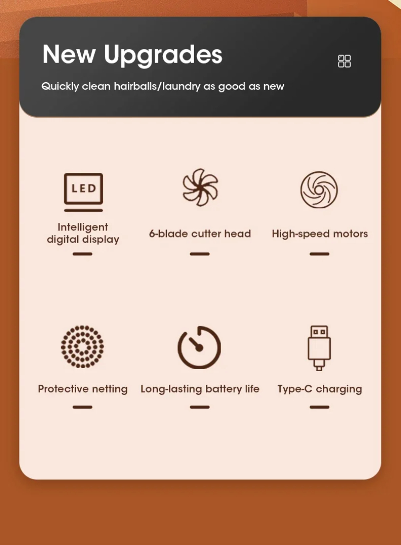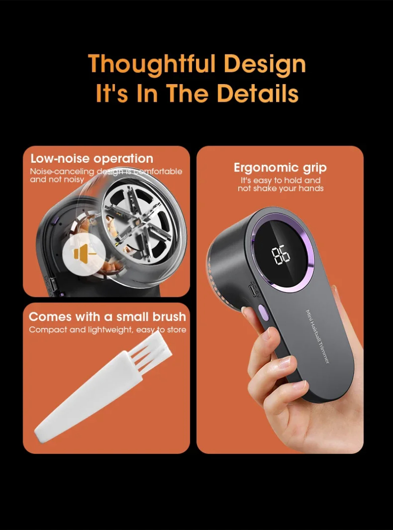 1. Stainless steel six-leaf cutter head, strong power, quickly and efficiently removes hairballs on clothes without hurting clothes, making your clothes smooth and tidy.
