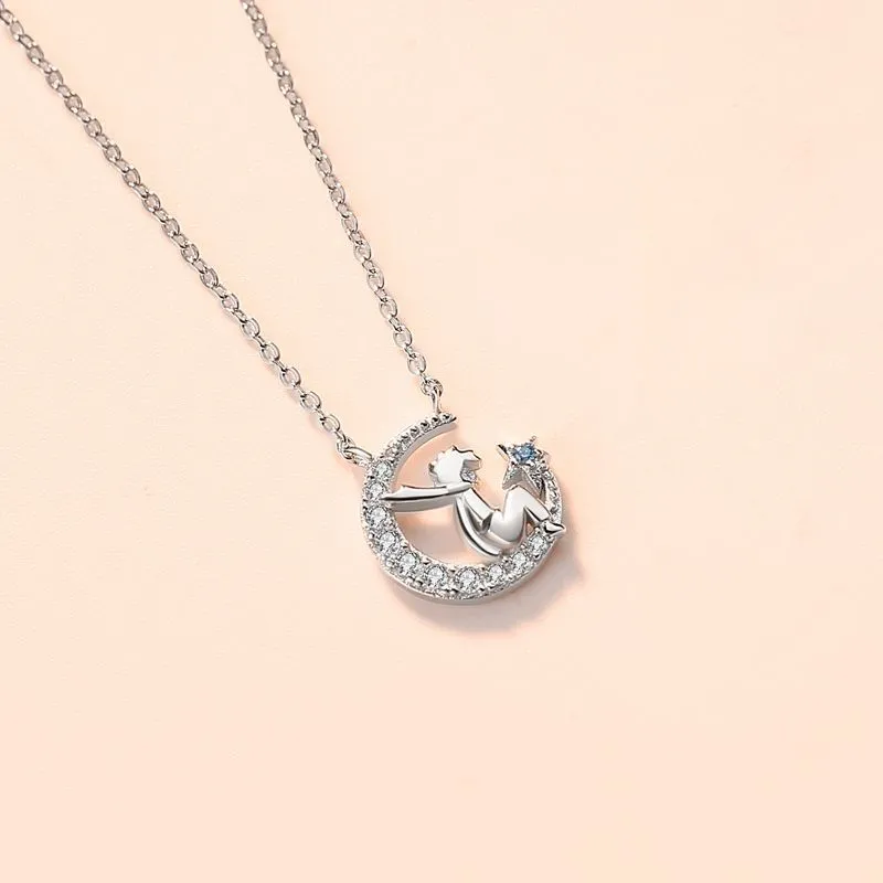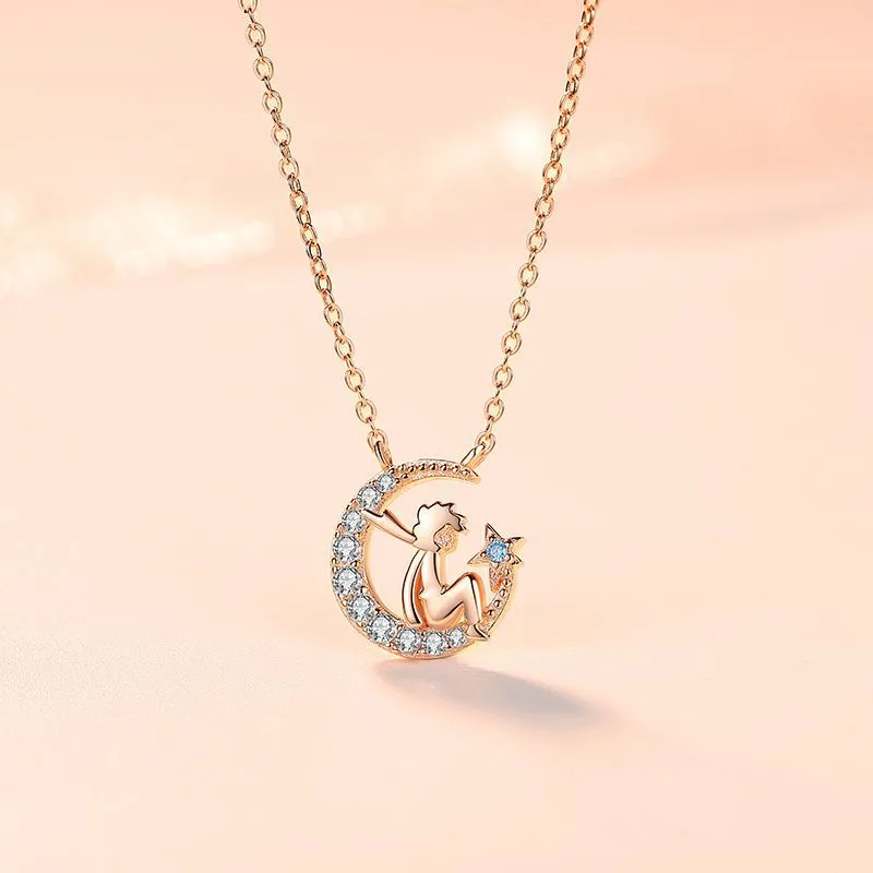 Little Prince Moon Pendant Necklace Clavicle Chain Luxury Women