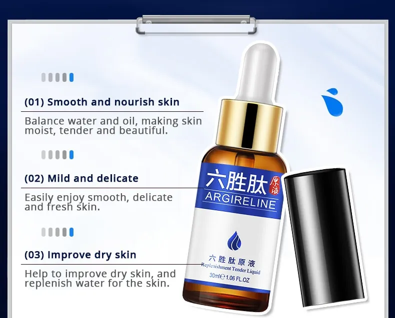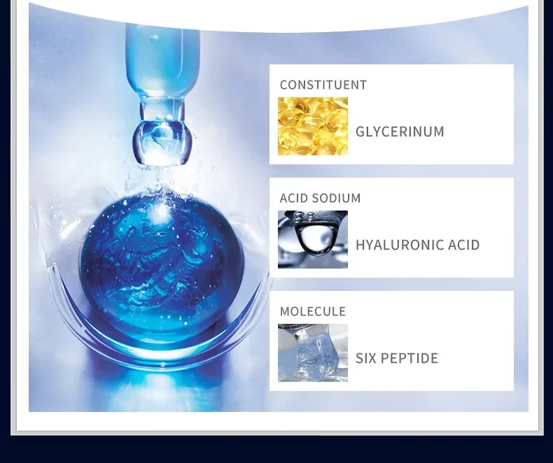 ProduitEFficacy: contenant l'essence de concentré argicable, nourrir, tendre la peau et améliorer le manque d'eau de la peau.