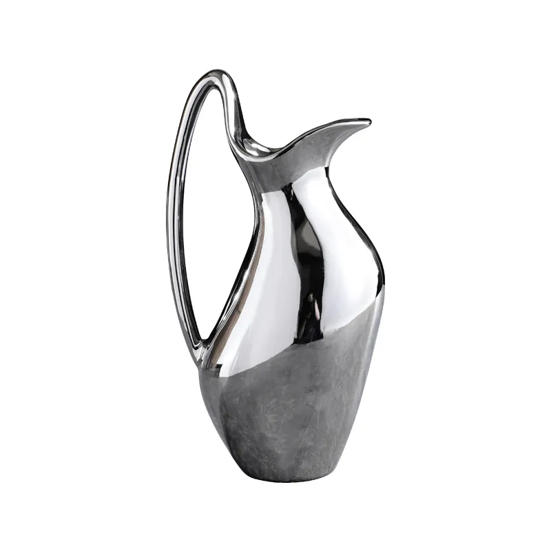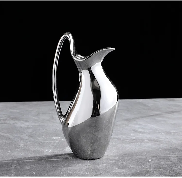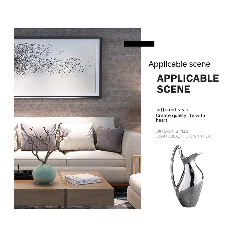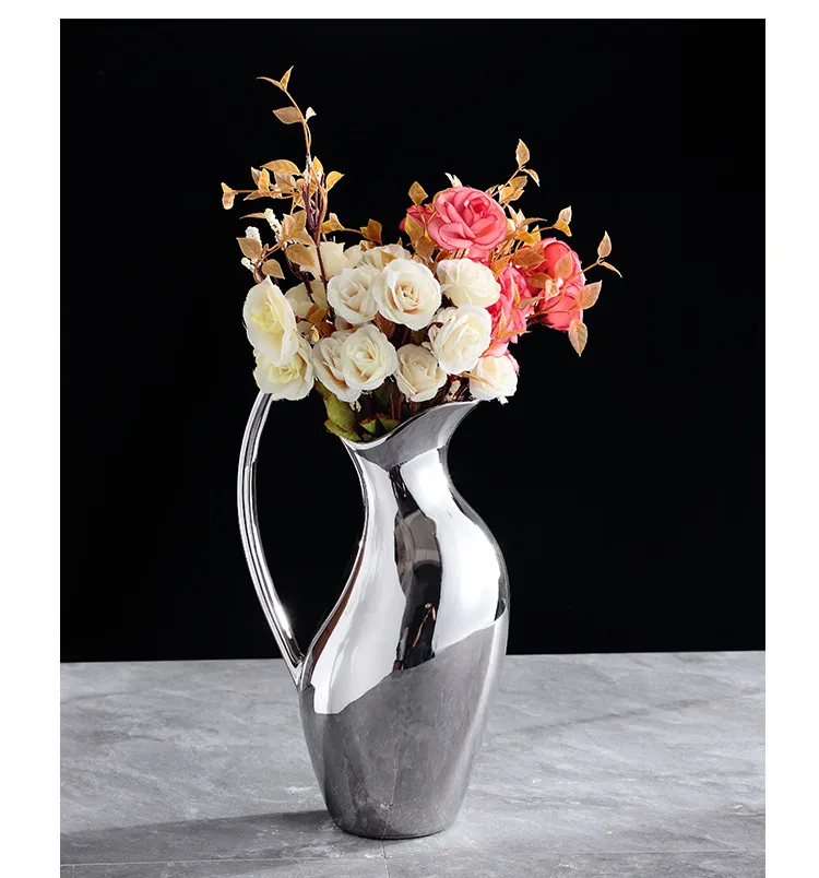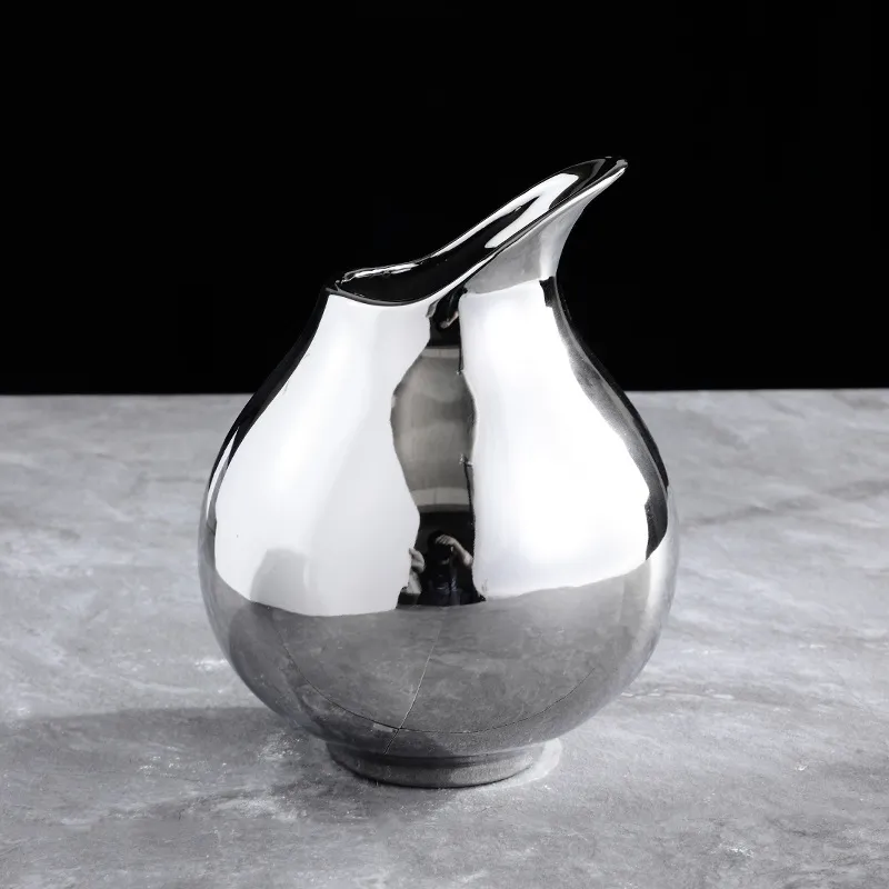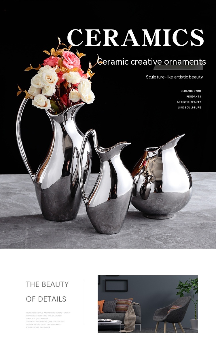 Living Room Home Silver Pot-shaped Ceramic Vase Flower Model Room Ornament Soft Decoration