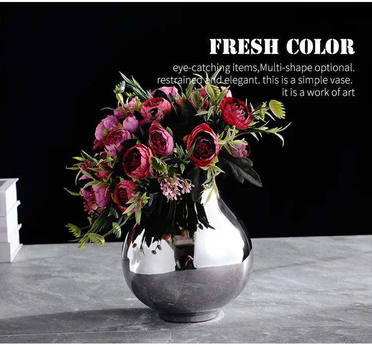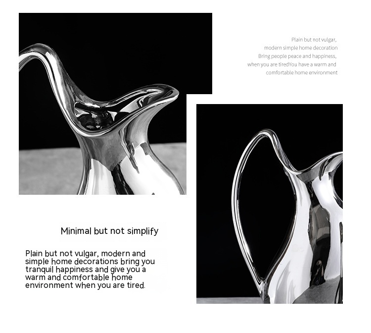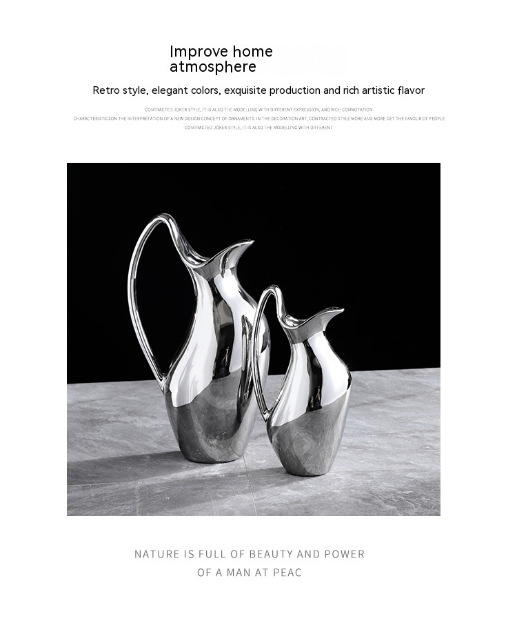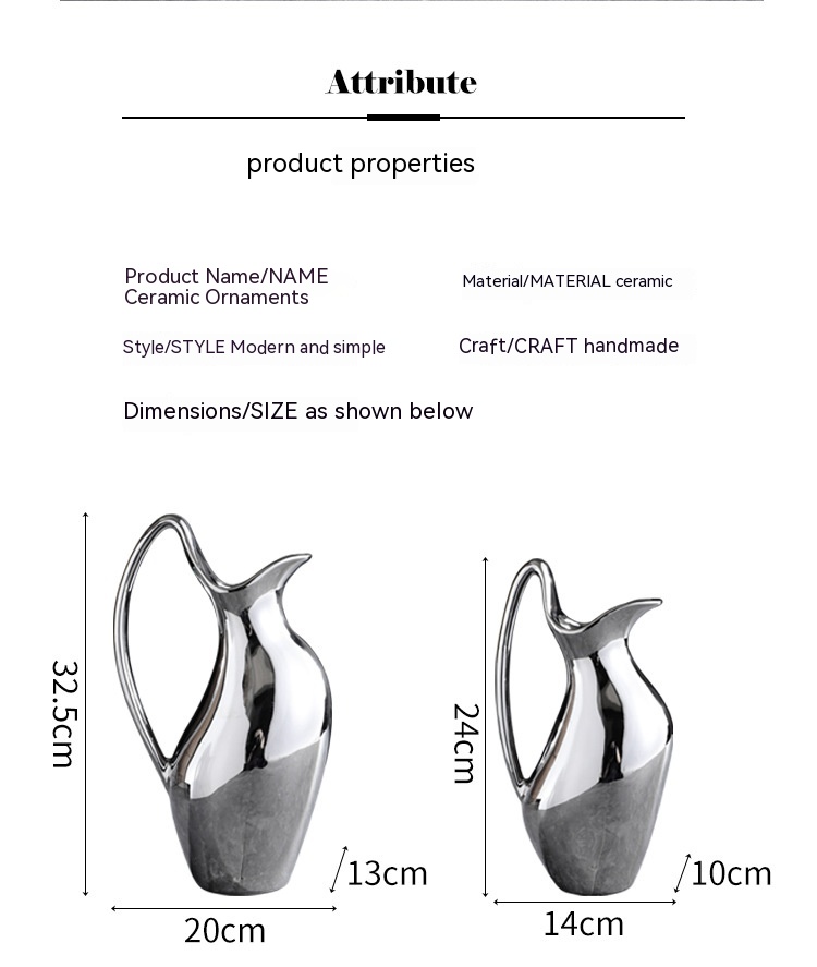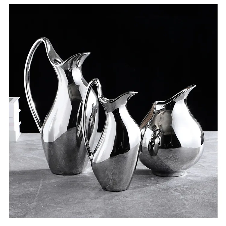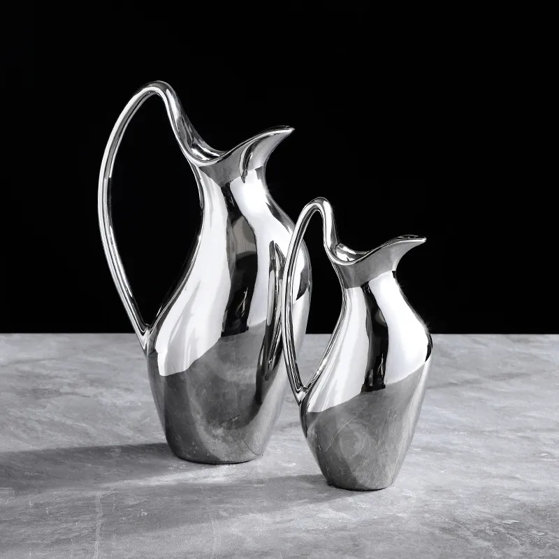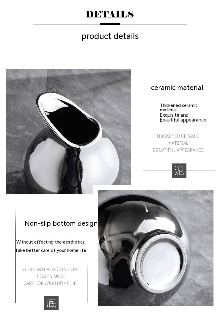 Living Room Home Silver Pot-shaped Ceramic Vase Flower Model Room Ornament Soft Decoration